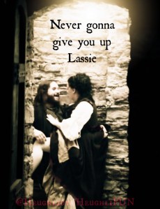 That’s hilarious! *laugh* You two definitely had ‘something’ and it was a joy to watch. Who am I kidding, it is STILL a joy to watch. What would you say were your most enjoyable scenes to film on Outlander? I enjoyed the physical things. The fights were a hoot. The sporting games with wooden bats. I remember one particular day, getting carried away and biting this poor stuntman’s ear and it bled. I was in shock and felt so bad and this big cockney guy stands up and says…*wiping the blood away from his ear*…”Don’t worry mate…it’s all in a days pay!”*laugh*